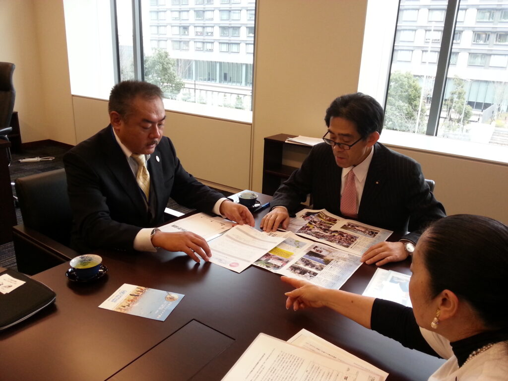 オートバイ議員連盟の会長も務めておられる逢沢先生に、オートバイ関連の事業の紹介とこれまでの支援活動報告と、当協会設立についてのご報告を行いました。