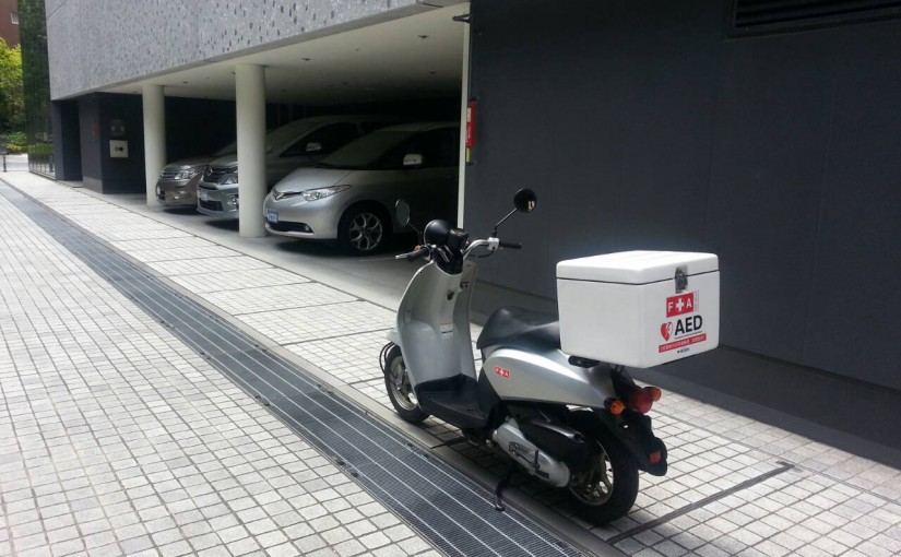 平成27年6月 フランス大使館様 メディカルバイク試験導入 ■ベース車両:ホンダ トゥディ ■オプション:AED・救急セット